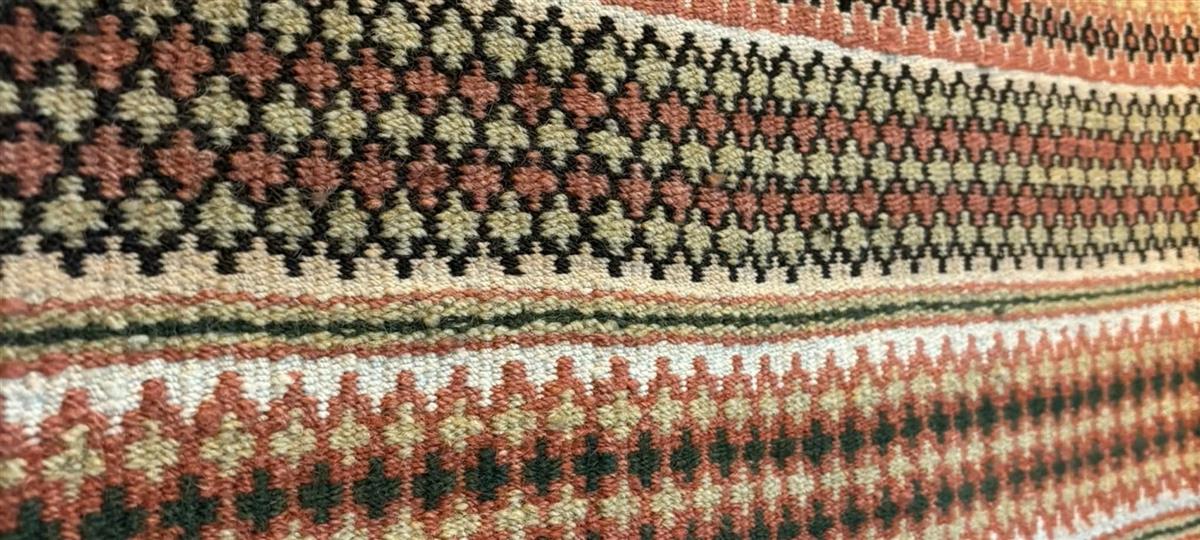 Åttebladsrosa er det mest vanlege motivet i ruteåkle frå Vestlandet, men rosa har ulike lokale utformingar. Roseåkla er vevd i smettevevsteknikk.