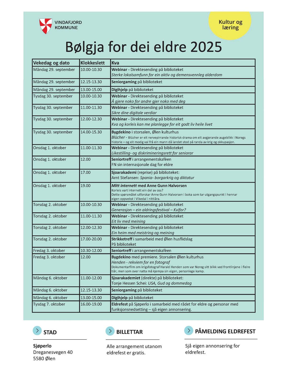 Minner òg om at Bølgja for eldre vert arrangert i desse dagar (sjå plakat).