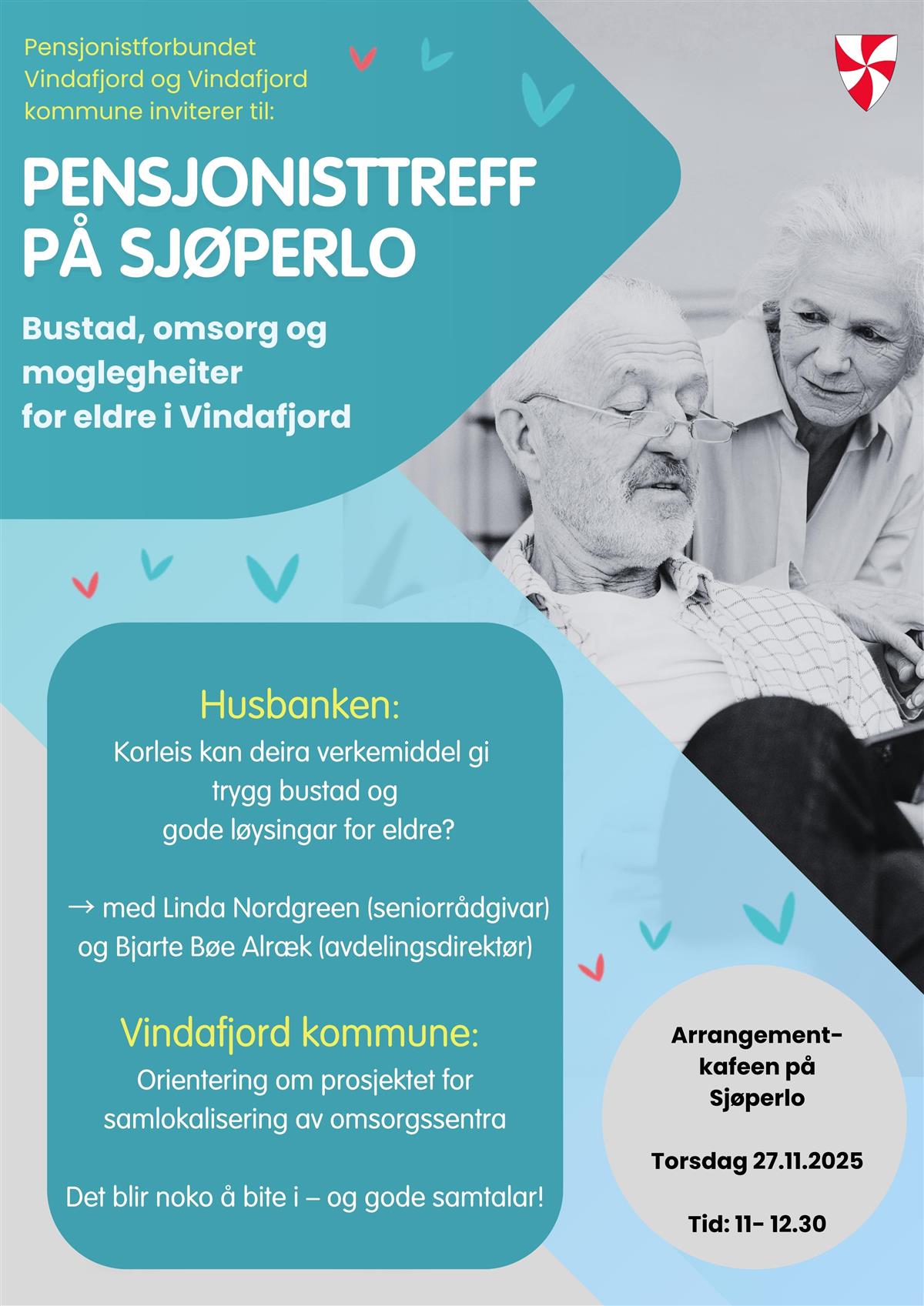 Pensjonistforbundet Vindafjord og Vindafjord kommune inviterer til pensjonisttreff på Sjøperlo torsdag 27. november.
