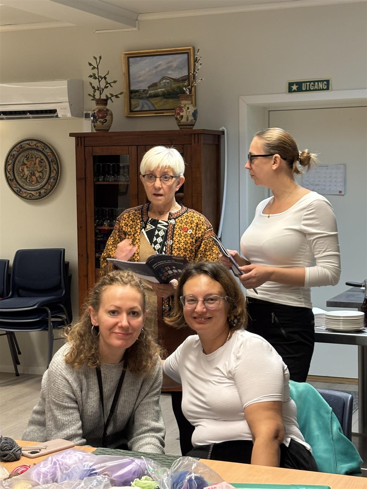 På bileta: Olha Demenchuk, AnneTone Salte Andersen (leiar Ølen Sanitetslag), Viktoriia Dzhigar og Oleksandra Patran.
