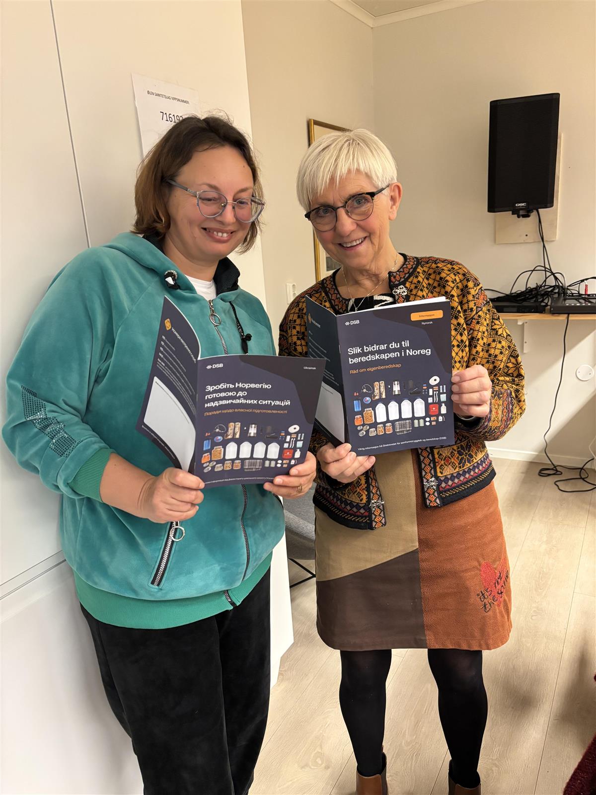 Dei fekk brosjyrar på ukrainsk og norsk og såg eksempel på ein eigenberedskapskasse.