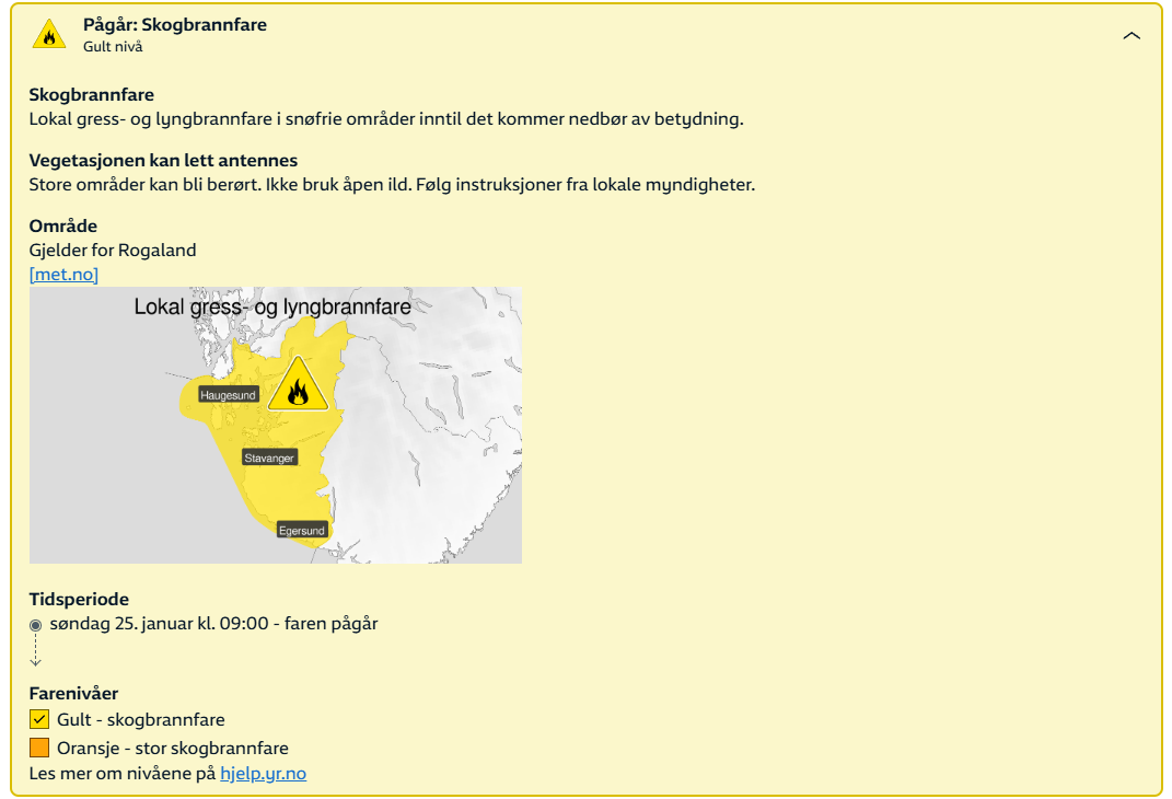 Viktig melding: Gult farevarsel for brann i lyng og gras