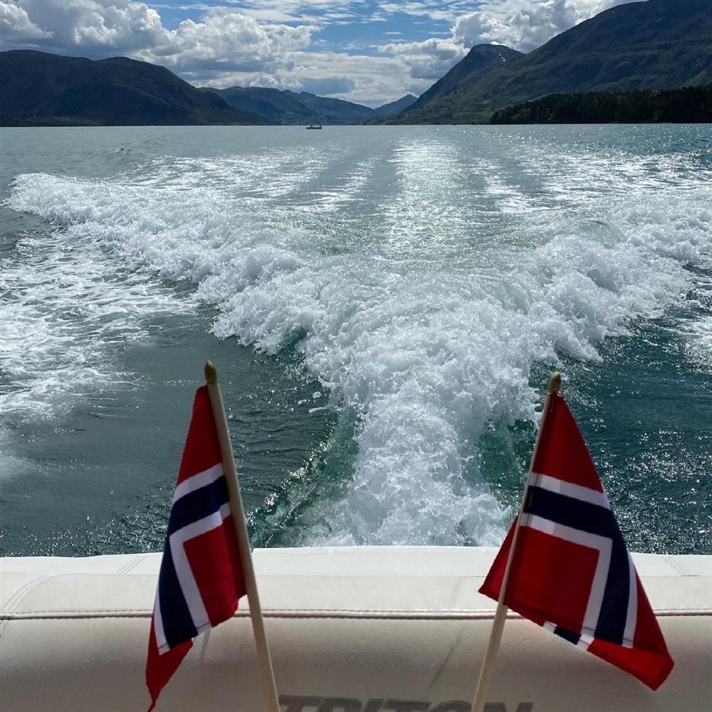 Båt på veg ut Ølsfjorden. - Klikk for stort bilete